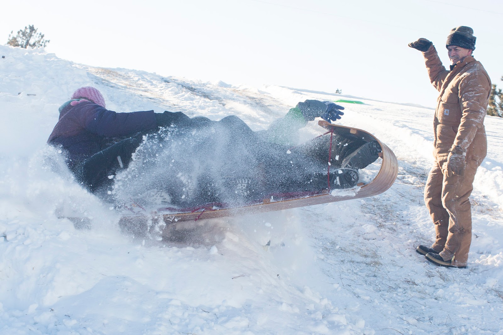 Then it was off to the sledding hill once again, manmade sled jumps and all!